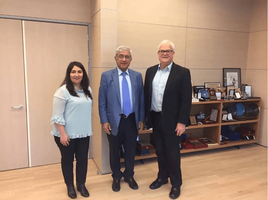 From December 6-10, 2017, at the invitation of ADA University, Honorary Professor Michael Sherraden from Washington University, USA, visited Azerbaijan. Prof. Sherraden is the Director of the Center for Social Development at the University of Washington and the architect of the “Children’s Savings Accounts” strategy implemented in various countries. On December 6, Prof. Sherraden met with ADA University Rector and Deputy Minister of Foreign Affairs of Azerbaijan, Mr. Hafiz Pashayev. Aytekin Huseynli, Chairman of AZSIIB and a doctoral student at Washington University, USA, also attended the meeting. Discussions were centered on the potential implementation of the “Children’s Savings Accounts” strategy in Azerbaijan.