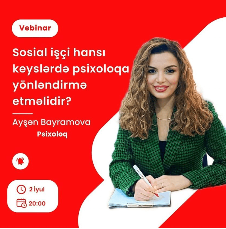 July 2nd 2023: During the summer we pondered; “In what cases should a social worker refer to a psychologist?” This question was explored and determined in the presentation by Ayşan Bayramova, organised by the Azerbaijan Social Work Public Union.